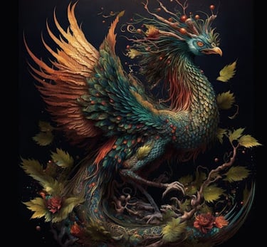 Así que tocaba ya plantar cara. En esos momentos vino a mi cabeza la idea del Fénix que surgía de sus cenizas, su historia me fascinaba. El Fénix es un ave mitológica de leyendas populares en el Medio Oriente, África e India y su nombre proviene del griego y significa “rojo”. Sus orígenes se remontan a Libia y Etiopía. Su aspecto es el de un enorme pájaro con un gran pico y potentes garras.