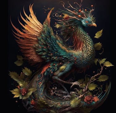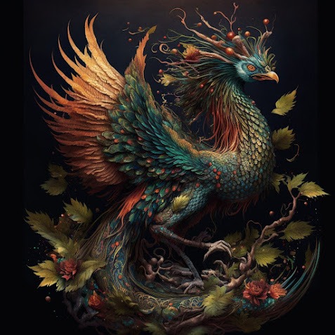Así que tocaba ya plantar cara. En esos momentos vino a mi cabeza la idea del Fénix que surgía de sus cenizas, su historia me fascinaba. El Fénix es un ave mitológica de leyendas populares en el Medio Oriente, África e India y su nombre proviene del griego y significa “rojo”. Sus orígenes se remontan a Libia y Etiopía. Su aspecto es el de un enorme pájaro con un gran pico y potentes garras. Del tamaño de un águila, parecido a una garza, con plumaje dorado y de color carmesí. Era un animal que podía cargar incluso con elefantes. Estaba considerado como un semidiós y según su mito poseía varios dones (lagrimas curativas, el poder de transformarse en un pájaro de fuego, gran fuerza, resistencia, etc...). Vivía en una zona comprendida entre Oriente Medio y la India, habitando en los desiertos.
