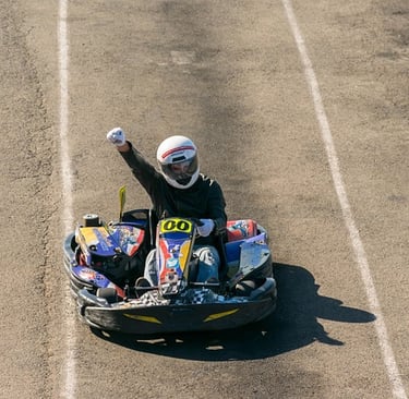 Al salir de la ciudad y alejarnos el día se despejó. Hacía sol, soplaba el viento y se podía ir en manga corta. Cuando llegamos al circuito no había nadie, aunque pronto vinieron cinco personas más. La longitud del trazado era de 1´5 Km y el asfalto estaba bastante cuidado. Decidimos correr tres tandas en karts de 270 cc que alcanzaban unos 70 Km/h. No eran juguetes y había que correr con cuidado.