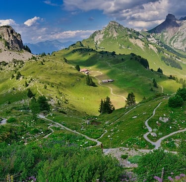 Pero al llegar arriba todo merecía la pena y el cansancio enseguida desaparecía. Las vistas eran increíbles y el calor que había al ascender la cumbre cambió a una corriente de viento fresca y pura. Era un lugar especial puesto que desde ahí se podían divisar un gran valle de color verde repleto de montañas. Estar en un sitio así te hacía sentir pequeño e insignificante pero también te aportaba paz y tranquilidad. Al mirar arriba el sol brillaba con fuerza y se podía ver alguna nube. El contraste de las montañas con el cielo, los colores... hacían que el lugar fuese hermoso.
