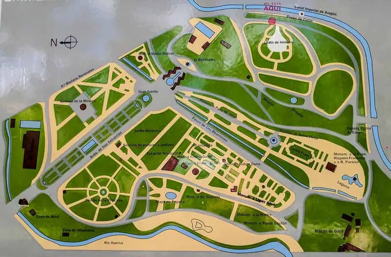 Dentro del parque se pueden disfrutar de gran cantidad de espacios naturales y de monumentos por lo que es un lugar ideal para estar en la familia, pasear o hacer deporte. El acceso principal se lleva a cabo a través de un puente que va a un paseo que cuenta con jardines y fuentes de inspiración versallesca. En el interior cuenta con lagos, fuentes monumentales, esculturas, zonas deportivas, infantiles, etc... Pero de entre todos los atractivos que tiene hay que destacar varios: