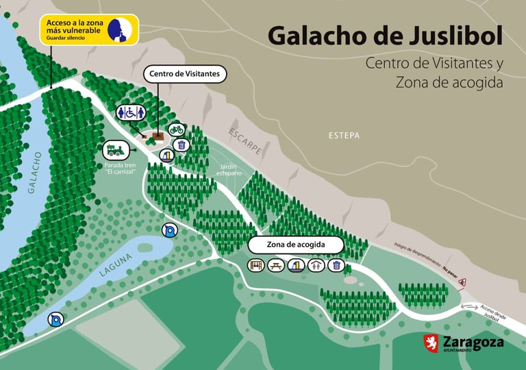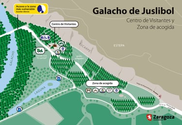 -Si vas en coche debes aparcar al final del barrio de Juslibol en una zona habilitada antes de la barrera de acceso que lleva al galacho.