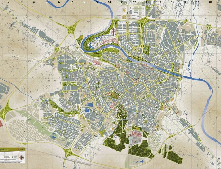 El plano de arriba corresponde con el núcleo urbano de la ciudad de Zaragoza. Las distancias al centro de la ciudad no son grandes y la mayoría de la población suele vivir en un radio de menos de 6 Km, aunque también existen barrios que están más alejados. Además la ciudad cuenta con una infraestructura grande en cuanto a parques, zonas verdes, caminos, carriles bici, senderos, aceras y calles por donde se puede correr. Lo dicho, la ciudad es grande y espaciosa pero sin ser descomunal. Todo esto hace que sea idónea para la práctica del running.