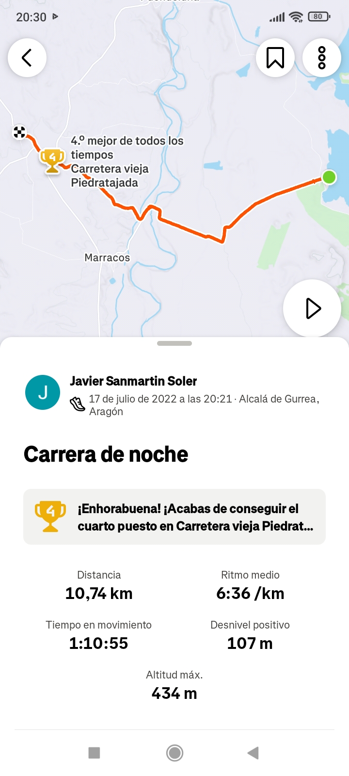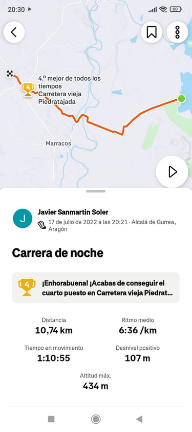 Entre el recorrido de ida y vuelta hay un total de 21,5 Km y se realiza íntegramente por el asfalto de la carretera. Lo que pasa es que solo os he dejado el recorrido de vuelta del pantano a Piedratajada que es la mitad del trayecto o sea 10,74 Km, pero que es suficiente para que os hagáis una idea del entrenamiento. Si no os importa os voy a explicar el recorrido en sentido inverso ya que me resulta más sencillo contarlo así.