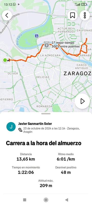 Conclusiones: El recorrido es un claro ejemplo de los desplazamientos que se pueden hacer corriendo por el interior del núcleo urbano. De cómo se puede aprovechar las infraestructuras para conectar los barrios con las zonas verdes y entrenar. Estos desplazamientos se pueden hacer a cualquier hora puesto que disponen de iluminación. Son ideales para hacer algún tipo de recado, desplazamiento y aprovechar para hacer algo de ejercicio ya que son trayectos cortos. Además también existe la posibilidad de utilizar el transporte urbano por si por algún motivo no podemos regresar a casa corriendo. Son ideales para hacer entrenamientos breves.