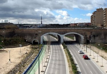 El Puente Manuel Giménez Abad separa el barrio de Las Fuentes de Vadorrey y coincide más o menos con la mitad de mi recorrido. Al cruzar el puente me encuentro con el barrio de Vadorrey y La Jota. Llego a una rotonda que corta con la Avenida Cataluña y continúa hasta llegar al barrio de Santa Isabel. Al pasar esta rotonda afronto el último tramo de la Ronda Hispanidad que se hace con una pequeña pendiente. Es la zona de Cogullada por donde se sale de la ciudad y se toma la autovía A-2. Este punto coincide con un pequeño pico en la parte superior derecha del mapa.