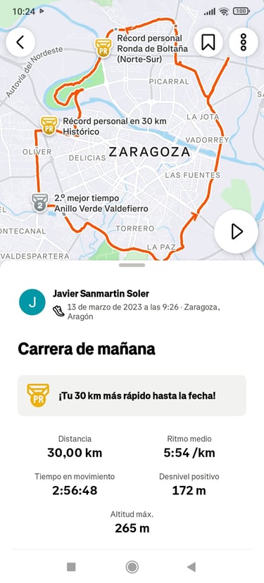 Conclusiones: El recorrido 9 es un trayecto que se desarrolla por uno de los cinturones que bordean la ciudad. Esta ruta nos permiten planificar sesiones de running que van desde rodajes suaves hasta un trabajo de fuerza más específico. Son lugares perfectos para entrenar en superficies duras y acumular kilómetros, hacer entrenamientos largos, series de velocidad, progresiones, entrenamientos a ritmo de carrera, etc... Es un recorrido exigente en el que ya hay que estar familiarizado con los entrenamientos prolongados. El trayecto es sencillo sin mucho desnivel, se puede variar el ritmo y se realiza prácticamente en asfalto y pavimento. Por eso lo ideal para entrenar en esta superficie es poder hacerlo con zapatillas de carretera.