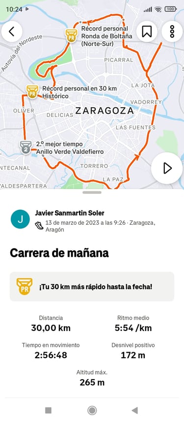 El recorrido 9 es un trayecto largo que transcurre por el denominado Tercer Cinturón de Zaragoza. El trazado del cinturón es circular y de aproximadamente 22 Km pero lo voy a alargar un poco más para llegar a los 30 Km. El recorrido pasa por puntos clave de la ciudad como son la Ronda Hispanidad, el Puente Giménez Abad y el Parque del Agua.